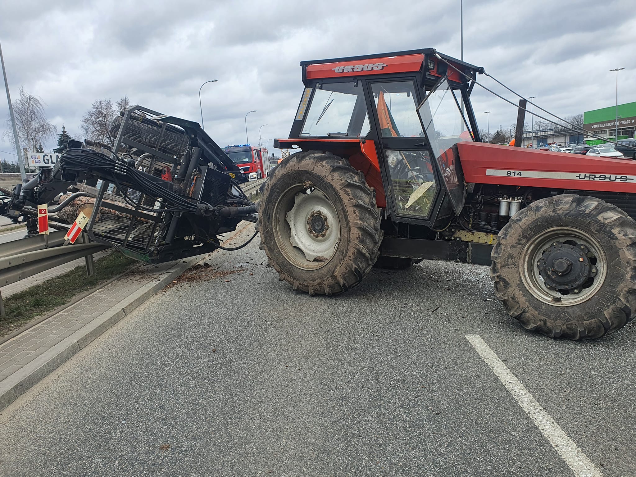 Do zdarzenia doszło około godziny 12.00. Kierowca ciągnika stracił panowanie nad pojazdem i staranował barierki.