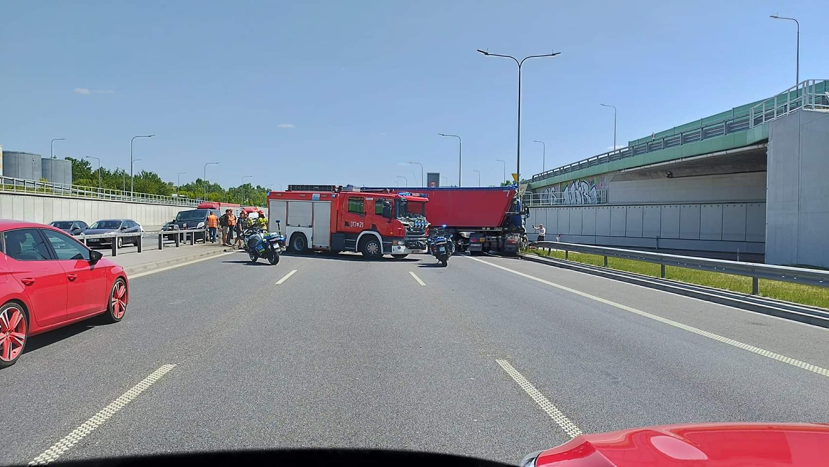 Do groźnego zdarzenia doszło koło południa, samochód ciężarowy z naczepą wyjeżdżający z tunelu w kierunku Poznania uległ awarii. Pękła opona, która doprowadziła do gwałtownego manewru zmiany kierunku jazdy – opisuje Jednostka Ratowniczo-Gaśnicza nr 17.