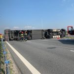 Ciężarówka leży na boku blokując trasę! Gigantyczne utrudnienia!