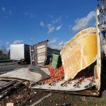 Ciężarówka na boku, jabłka wysypały się na jezdnię. Utrudnienia na krajowej „siódemce”