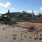 Na zjeździe z krajowej „siódemki” na drogę nr 50 doszło do wywrócenia się ciężarówki z jabłkami.