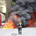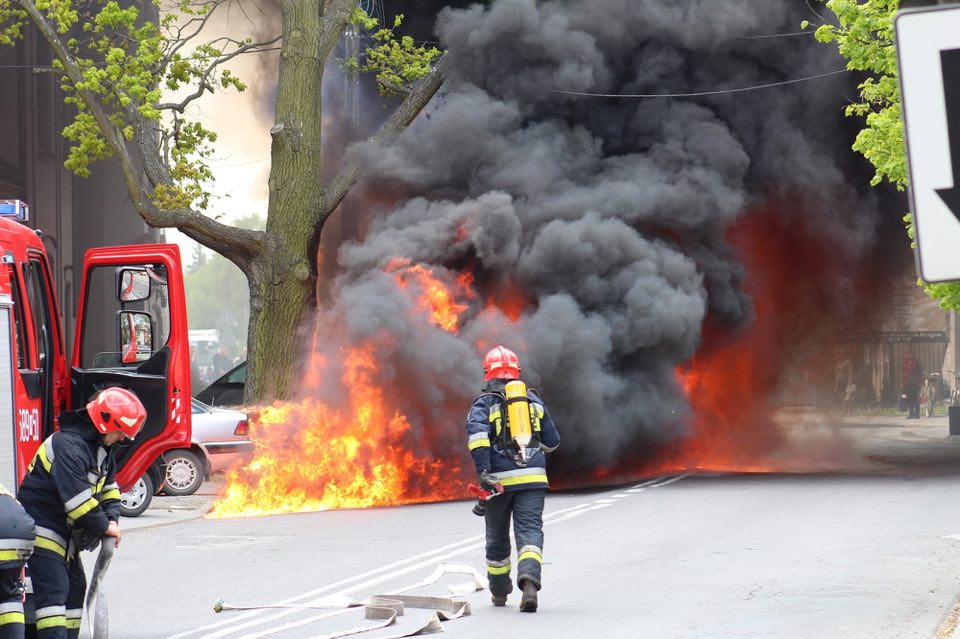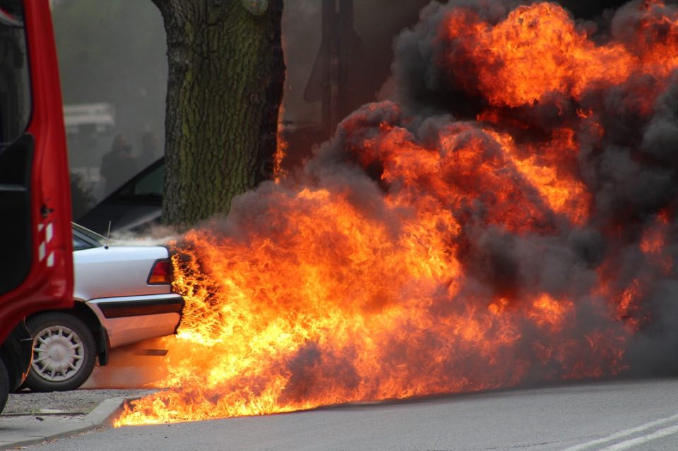 Z relacji świadków wynika, ze kierowca początkowo próbował ugasić samochód własnymi siłami, ale niestety nie udało mu się.