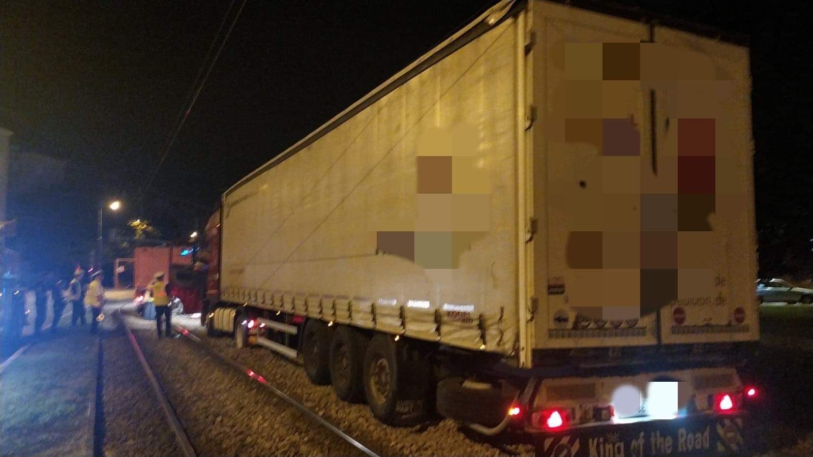 Ciężarówka wjechała na tory i zablokowała ruch!