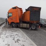 Utrudnienie w ruchu na trasie S-8 w stronę Białegostoku między Skuszewem, a Turzynem (pow. wyszkowski). Kierujący pojazdem ciężarowym wpadł w poślizg i uderzył w barierki energochłonne. Pojazd złożył się w scyzoryk.
