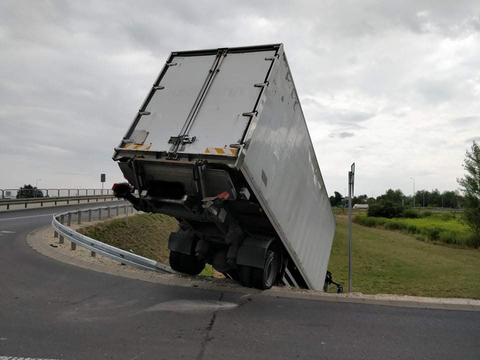 Ciężarówka wpadła do rowu po zderzeniu z busem. Ogromne utrudnienia