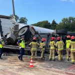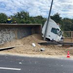 W al. Prymasa Tysiąclecia na łuku w kierunku Ochoty kierujący ciężarówką przewożącą piach stracił panowanie nad pojazdem po tym jak pękła opon. Ciężarówka wbiła się w barierki i wywróciła na bok. Nikomu nic się nie stało.