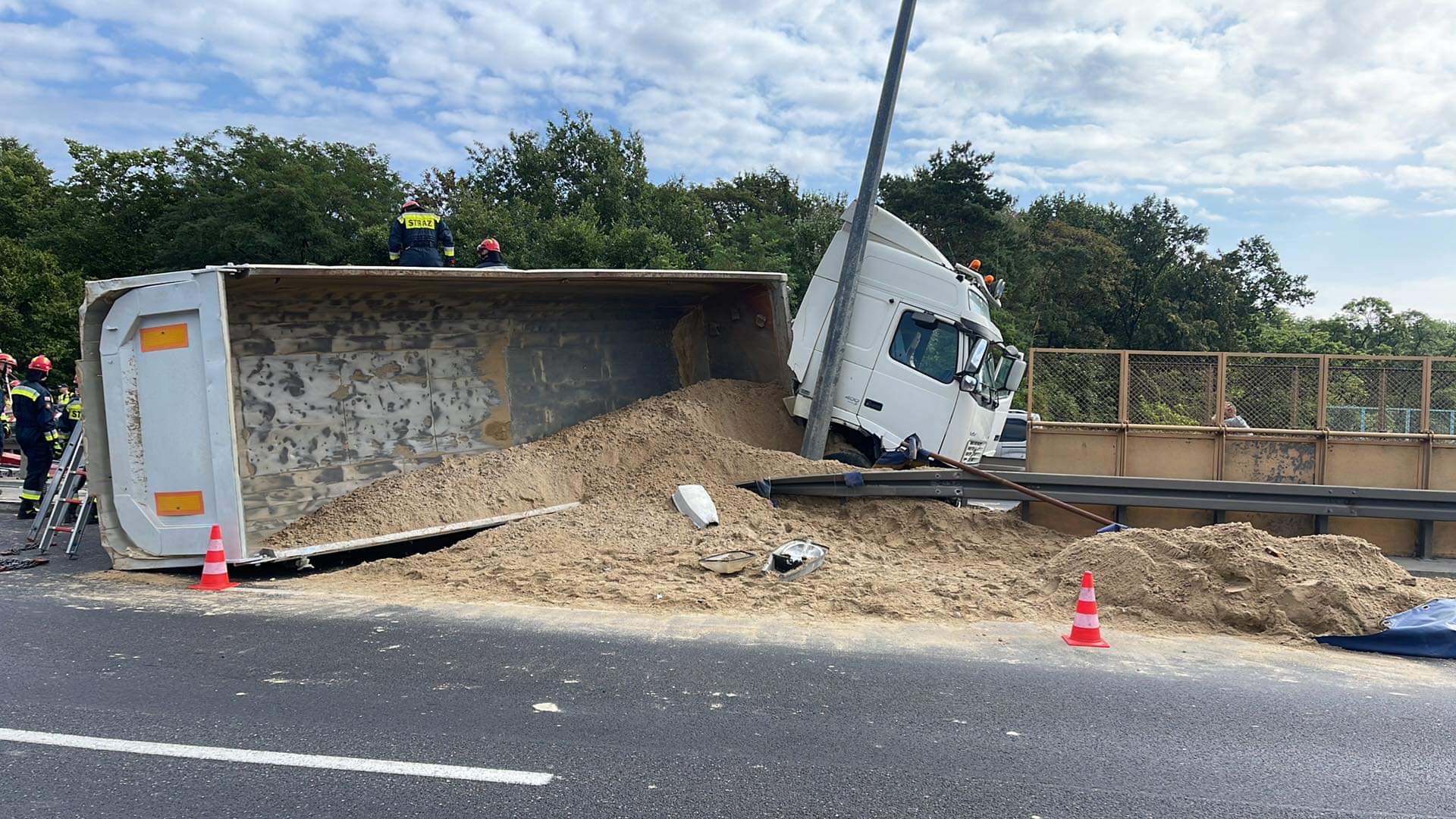 Ciężarówka z piachem na boku w al. Prymasa Tysiąclecia!