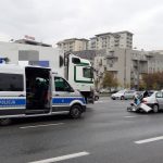 Ciężarówka zmiażdżyła tył samochodu w Dolince Służewieckiej