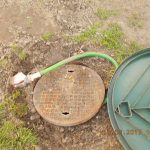 Na placu okazało się, że podejrzany szlauch podłączony jest do pompy, która ścieki z bezodpływowego zbiornika przelewała na teren posesji. Proceder trwał już dość długo, bo zdążyło powstać już cuchnące rozlewisko – coś w rodzaju specyficznego oczka wodnego…