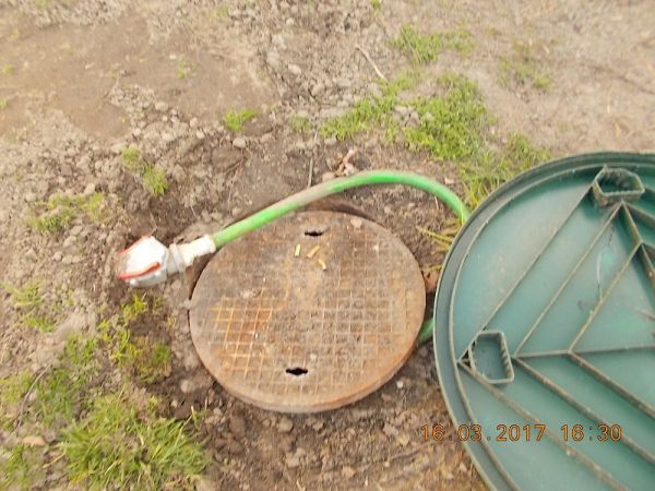 Na placu okazało się, że podejrzany szlauch podłączony jest do pompy, która ścieki z bezodpływowego zbiornika przelewała na teren posesji. Proceder trwał już dość długo, bo zdążyło powstać już cuchnące rozlewisko – coś w rodzaju specyficznego oczka wodnego…