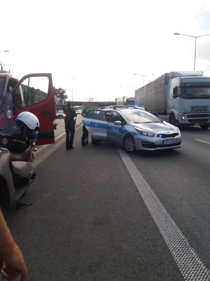 Na trasie S8 na wysokości węzła Marymont w kierunku Marek nasz kolega po fachu, który jeździ lawetą, zauważył dziwnie zachowującego się kierowcę skody, który stanął na środku trasy S8.