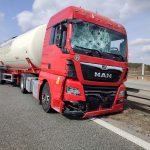 Na trasie S8 na wysokości miejscowości Skuszew (pow. wyszkowski) w kierunku Białegostoku kierujący cysterną wjechał w przyczepkę służby drogowej. Na szczęście nikomu nic się nie stało. Drożny jest tylko jeden pas ruchu.