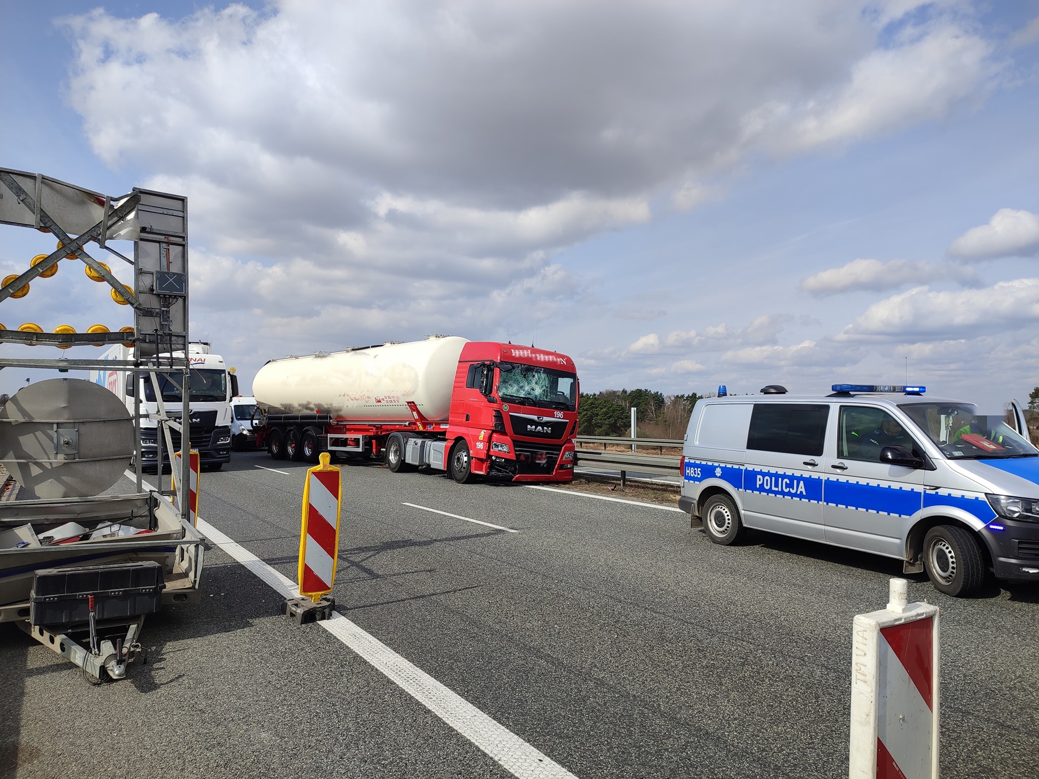 Cysterna wbiła się w tył przyczepki drogowców na trasie S8!