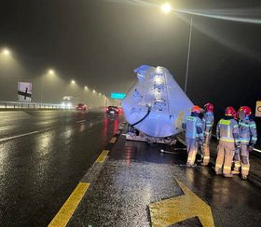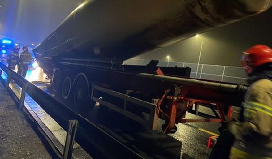 Na trasie S8 w kierunku Białegostoku na pasie zjazdowym na węźle Zielonka, cysterna uderzyła w kładkę dla pieszych. Na miejscu służby ratunkowe. Za informację i zdjęcia dziękujemy Sowilo Pomoc Drogowa.