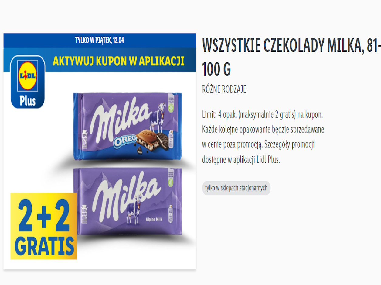 Promocja dostępna jest wyłącznie w sklepach stacjonarnych i dla użytkowników aplikacji Lidl Plus. Nie zapomnijcie aktywować kuponu w aplikacji, aby cieszyć się słodkim bonusie. To świetna okazja, by zrobić zapasy ulubionych słodyczy lub podzielić się nimi z bliskimi.