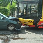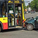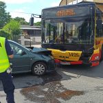 Czołowe zderzenie samochodu osobowego z autobusem. Utrudnienia w komunikacji miejskiej!