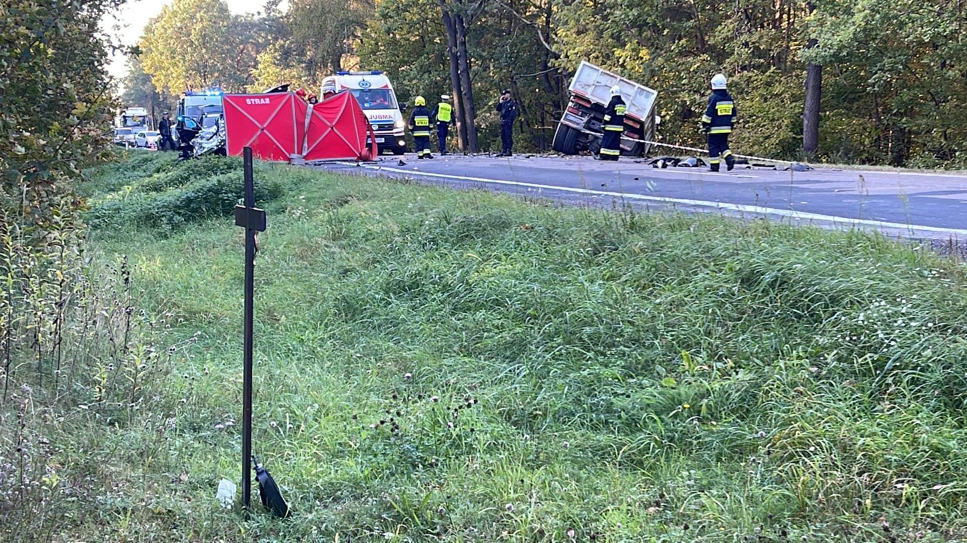 Czołowe zderzenie samochodu osobowego z ciężarówką na DW 631! Jedna osoba nie żyje