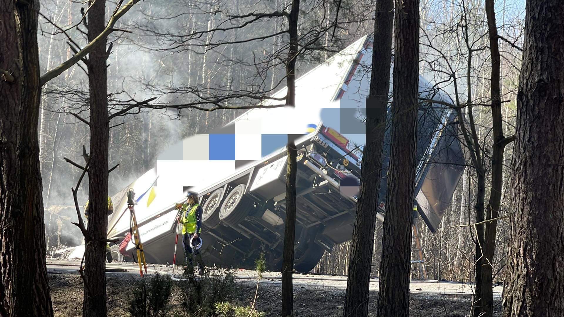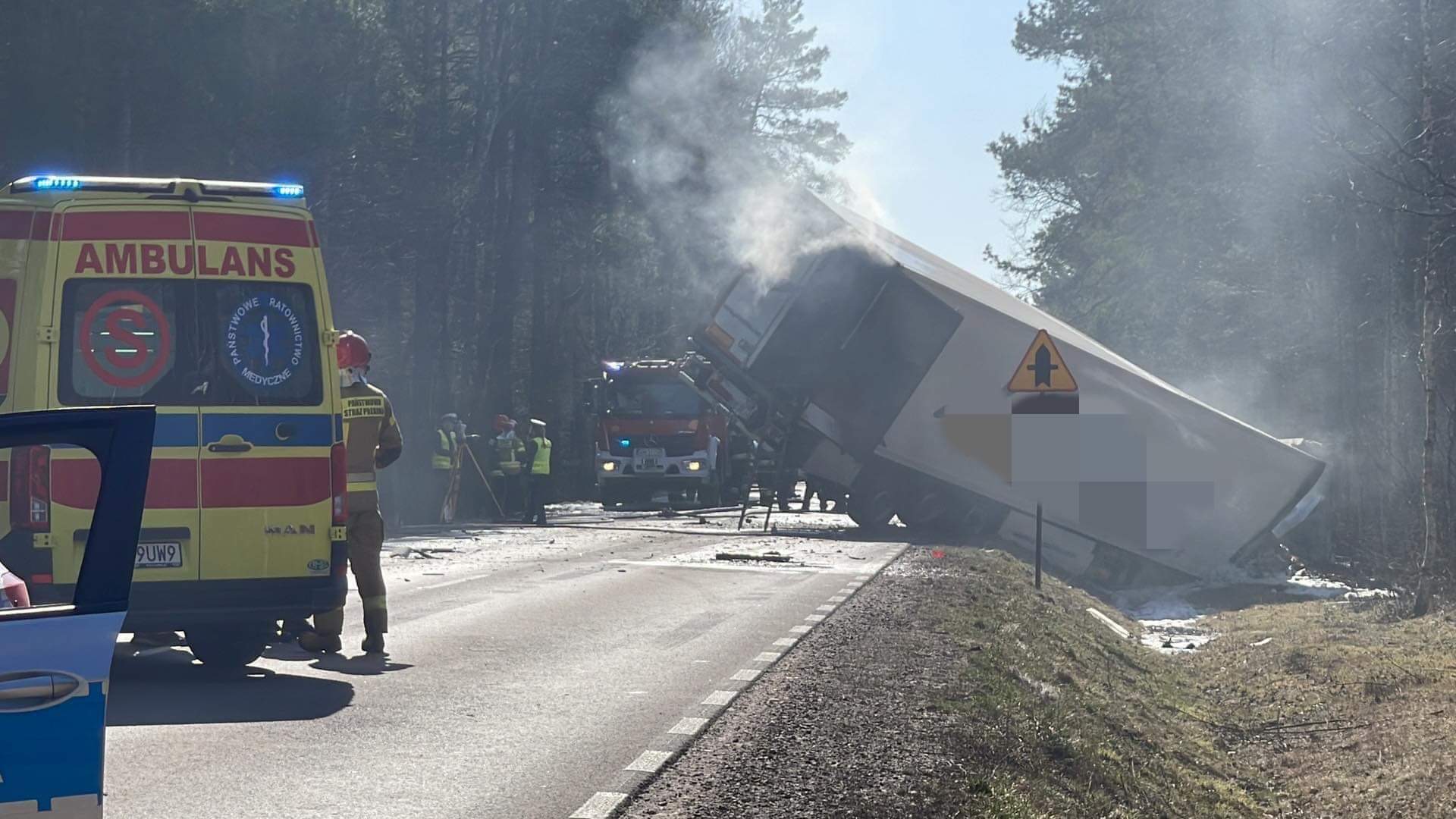 Czołowe zderzenie z ciężarówką! Kierowca osobówki spłonął w aucie