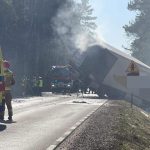 Na drodze krajowej numer 50 w miejscowości Kąty- Borucza (pow. miński) doszło do czołowego zderzenia samochodu osobowego z ciężarówką. W wyniku wypadku oba pojazdy stanęły w płomieniach. Niestety kierowca auta osobowego spłonął w aucie. Kierowcy ciężarówki nic się nie stało.