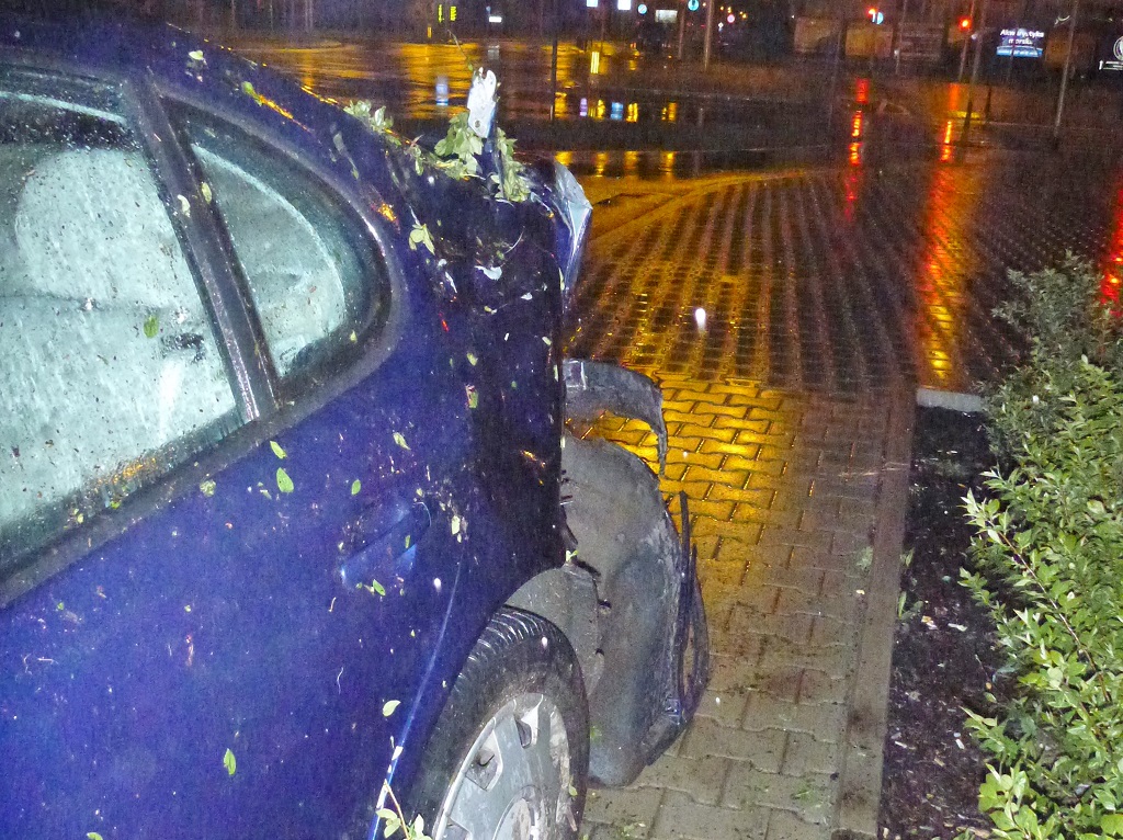 „Po przybyciu na miejsce zdarzenia ustalono, iż doszło do kolizji dwóch pojazdów. Jeden z pojazdów uczestniczących w zdarzeniu oddalił się z miejsca zdarzenia, natomiast drugi wypadł z jezdni, ściął latarnie, a następnie dachując uszkodził poręcz pobliskiego budynku” – relacjonuje mł .bryg. Paweł Klimkiewicz ze stołecznej Straży Pożarnej