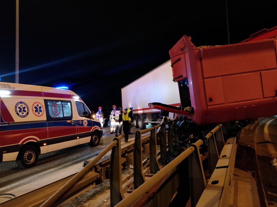 Kierowca ciężarówki został przewieziony do szpitala.