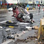 Dachowanie samochodu na Powązkowskiej. Występują bardzo duże utrudnienia w ruchu. Jak informuje nasz reporter zderzyły się dwa auta osobowe – BMW i fiat seicento.