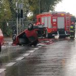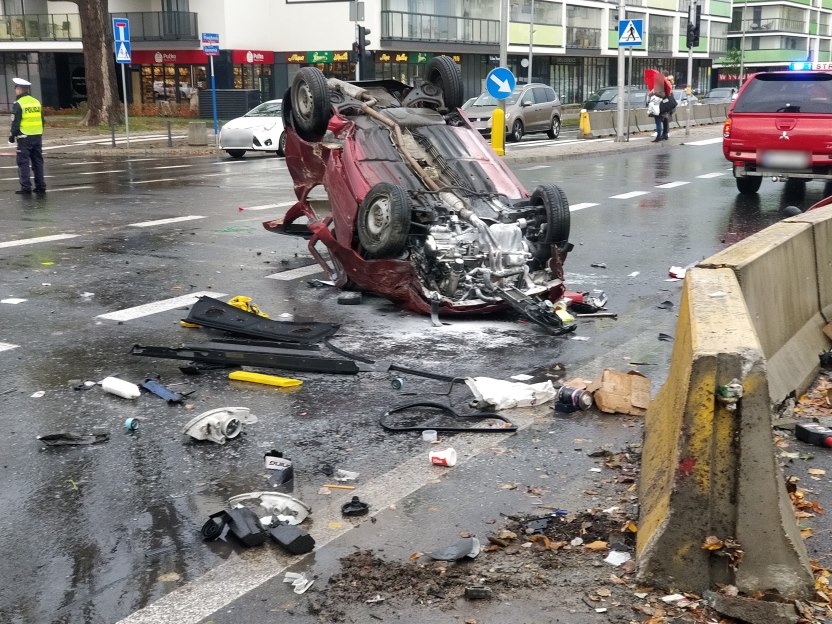 Dachowanie fiata na Powązkowskiej. Ulica całkowicie zablokowana