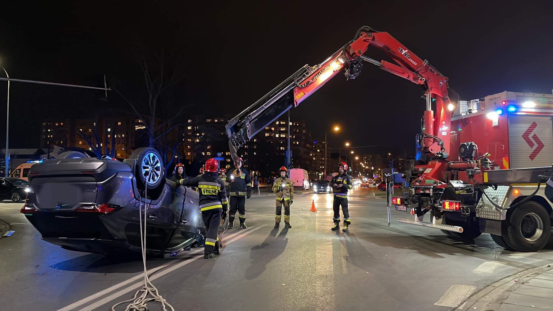 Dachowanie na Białołęce. Skrzyżowanie zablokowane!