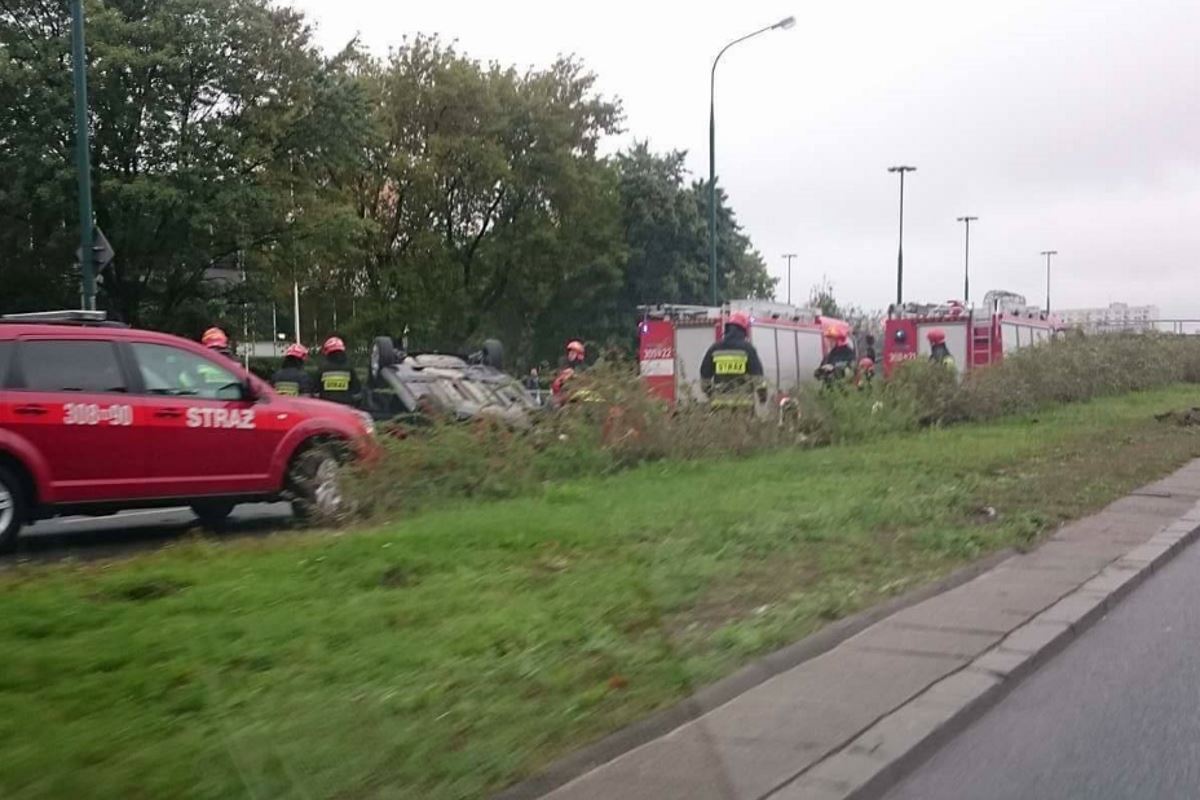 Dachowanie na Ostrobramskiej. Weszła w zakręt, uderzyła w nasyp