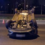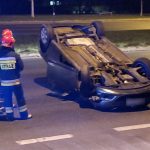 Dachowanie opla po zderzeniu 3 aut w Dolince Służewieckiej