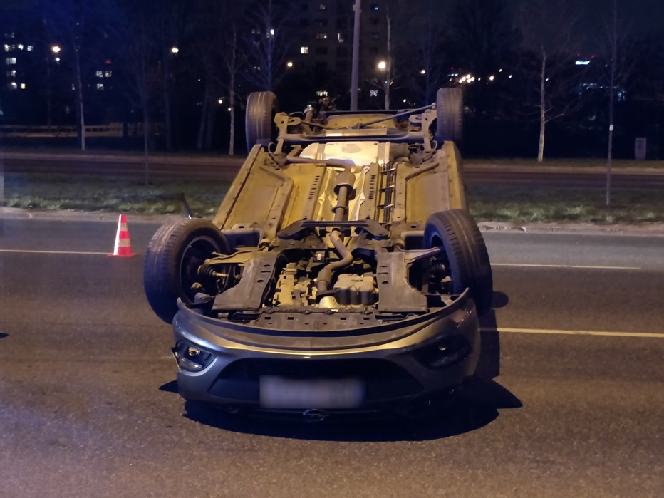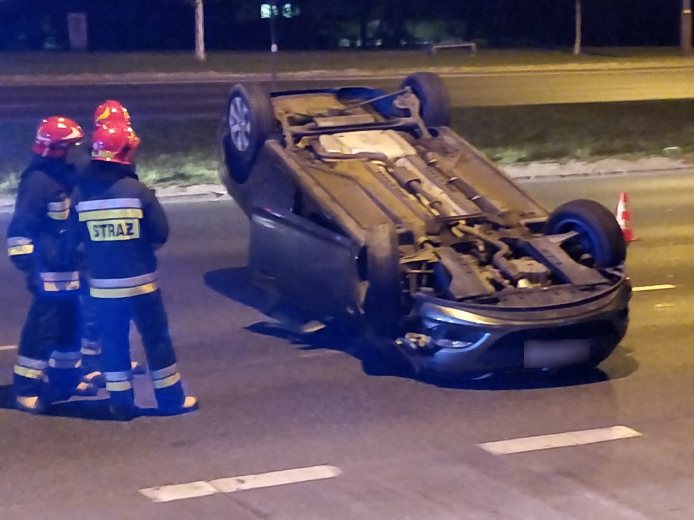W Dolince Służewieckiej na wysokości ulicy Nowoursynowskiej doszło do zderzenia opla, skody i audi. Po zderzeniu opel dachował.
