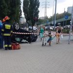 Na Rondzie Unii Europejskiej zderzyły się dwa mercedesy. Jeden z nich dachował. Na miejscu jest policja i  straż pożarna.