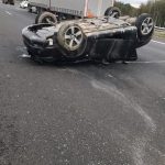 Na trasie S8 w Zielonce samochód osobowy uderzył w barierki. W wyniku zderzenia doszło do dachowania.