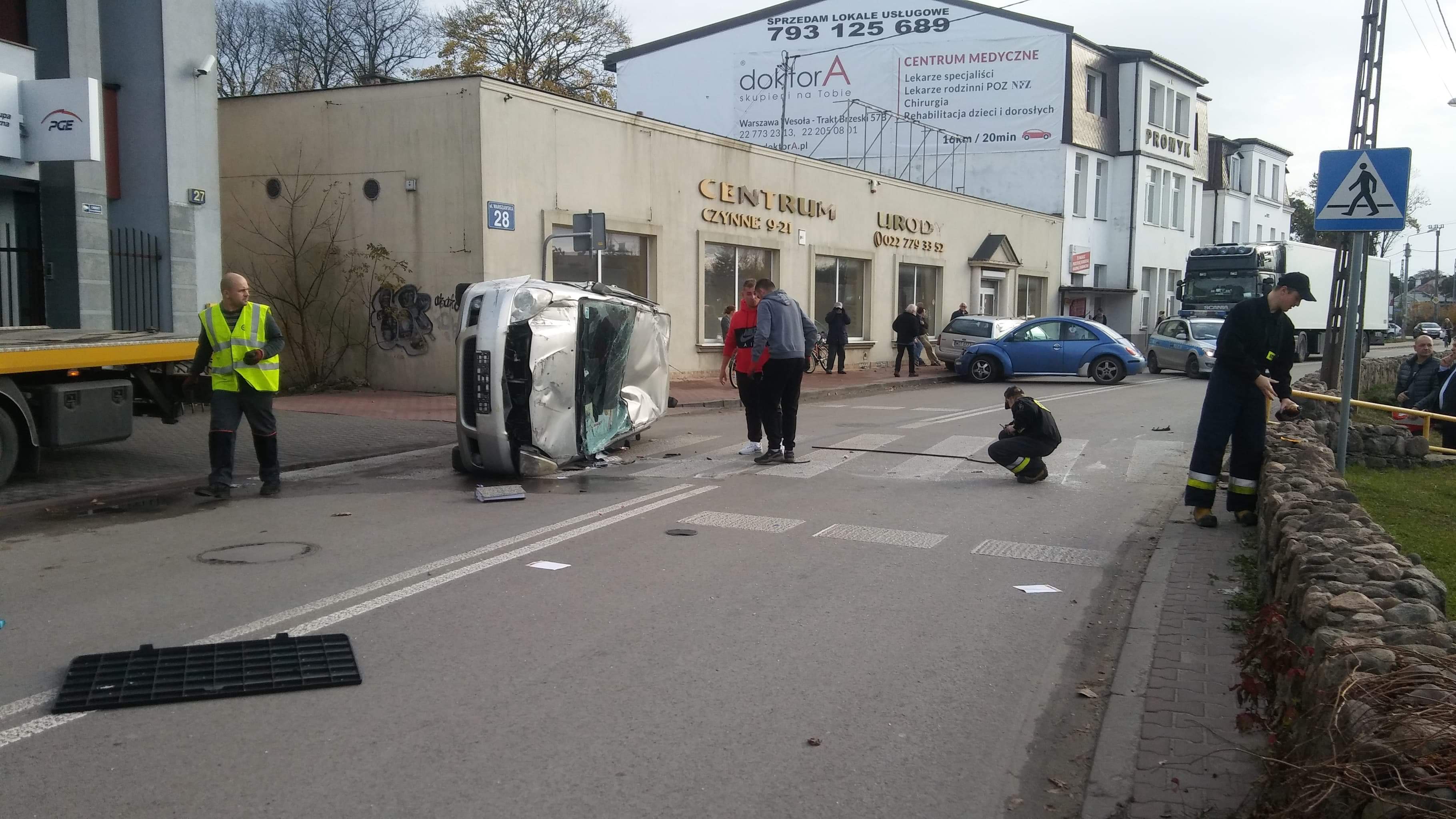 Na ulicy Warszawskiej w Otwocku doszło do dachowania samochodu osobowego. Nikt nie został ranny.