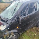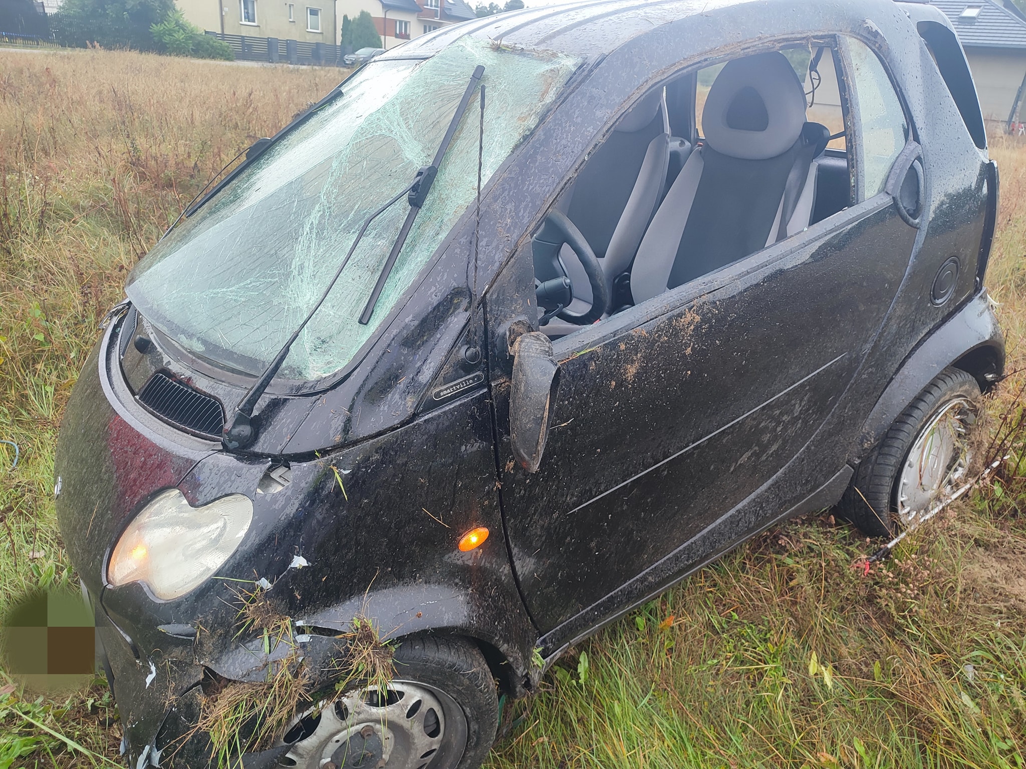 Dachowanie smarta na łuku drogi. Jedna osoba zginęła