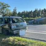 W Al. Krakowskiej w miejscowości Wola Mrokowska (pow. piaseczyński) w kierunku Warszawy doszło do zderzenia dwóch samochodów osobowych marki mazda i peugeot. Po zderzeniu mazda wylądowała na dachu. Dwie osoby były badane przez ZRM.