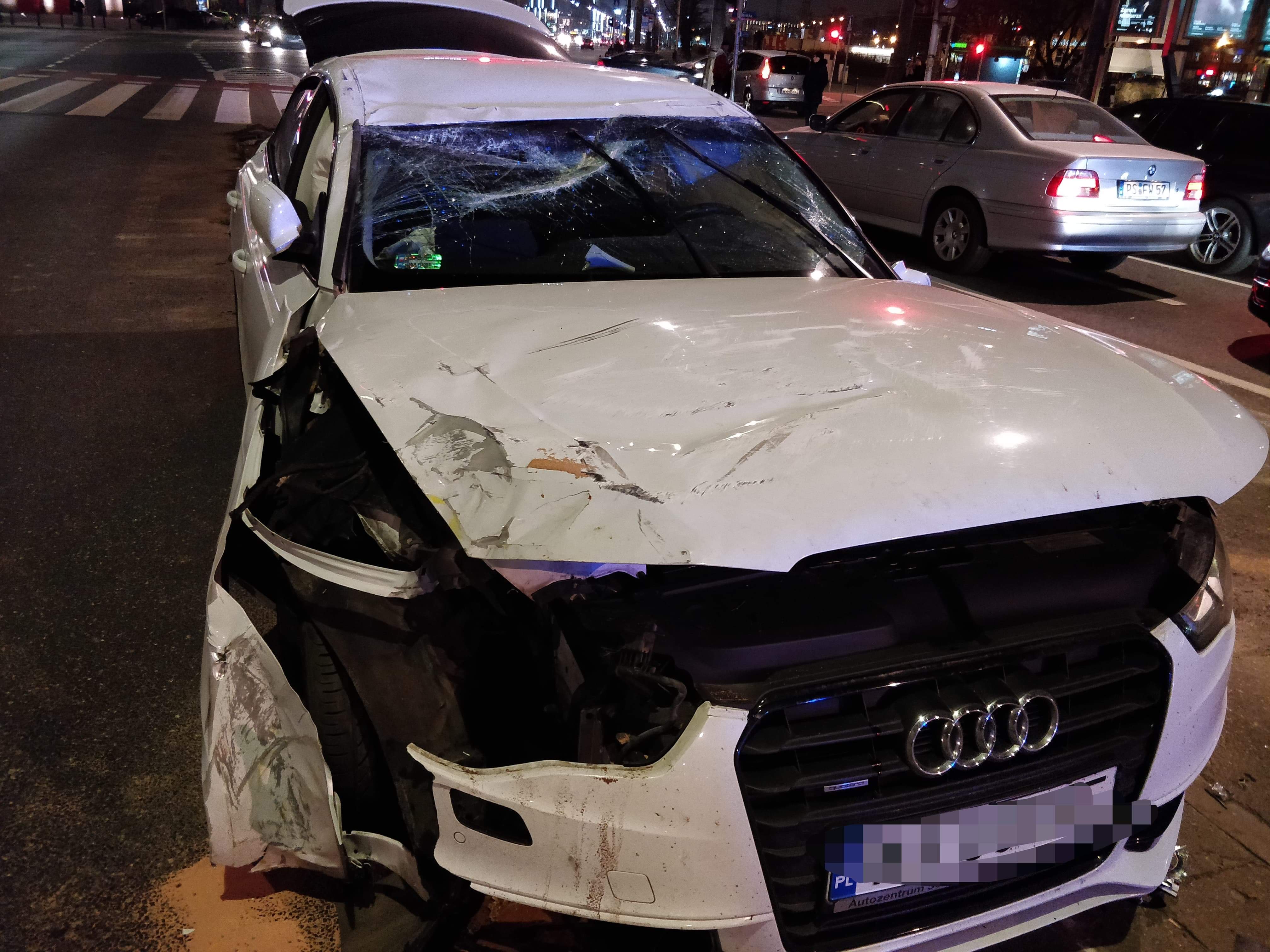 Na skrzyżowaniu Marszałkowskiej z Królewską doszło do zderzenia renault z audi. W wyniku zderzenia audi dachowało wpadając na wysepkę dla pieszych i ścinając znak i sygnalizator świetlny. Nikt nie został ranny.