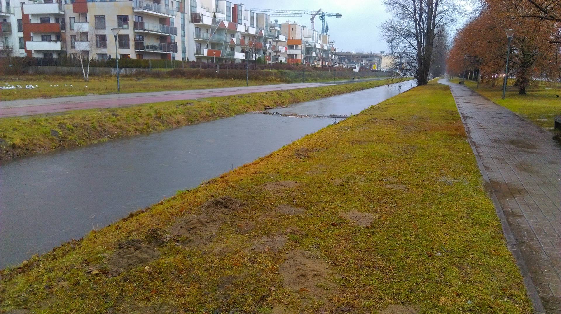 Długotrwałe opady w Warszawie. Potok Służewiecki w niektórych miejscach bliski wylania