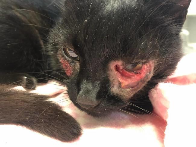 Zgłoszenie o tym kocie dostaliśmy od karmicieli. Kot niby miał coś z okiem… Wczoraj trafił do kliniki. Oprócz żywej rany przy oku okazało się, że ma kilka zmian skórnych. Padło podejrzenie czerniaka. Ten kot musiał cierpieć długie miesiące!