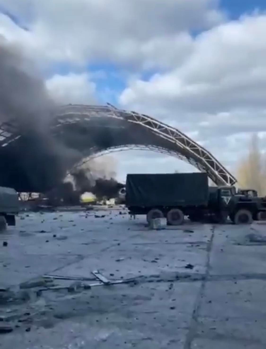 The video shows burning cars with the letter V, as well as the burning “Mriya”. pic.twitter.com/kiDt8OKX0b