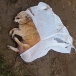 „W dniu dzisiejszym (09.11.2017 r.) około godziny 12 moja mama napotkała taki drastyczny widok przy polnej drodze, w okolicy Wyszkowskiej na Białołęce w Warszawie. Pies w typie Chihuahua z dużym guzem na brzuszku, niestety już martwy. Obok dwie foliowe torby, z czego jedna z widocznymi nadgryzieniami, jakby pies próbował się wydostać. Czy ktoś kojarzy czyj to mógł być pies lub kto mógł dopuścić się tak haniebnego czynu i skazał prawdopodobnie chorego psa na śmierć w cierpieniu? Niestety moi rodzice pojechali już zakopać psa, ale w razie potrzeby identyfikacji znane jest miejsce pochówku.” – pisze Pani Paulina na Facebooku