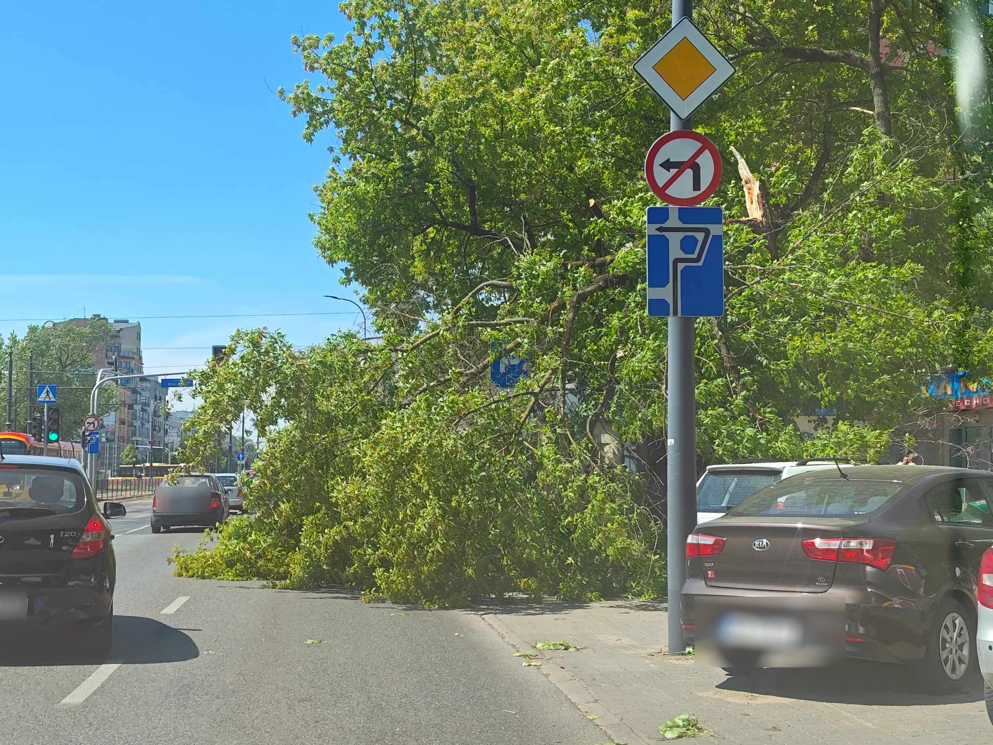 Drzewo runęło na jezdnię, utrudnienia w ruchu w stronę Centrum