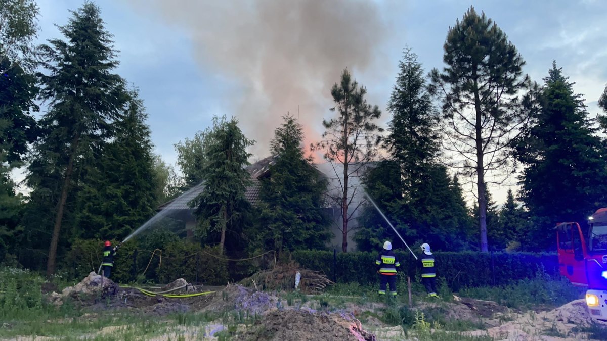 W miejscowości Aleksandrów (pow. legionowski) doszło do pożaru domu. Na miejscu z ogniem walczy 10 zastępów straży pożarnej.