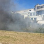 Przy ulicy Maczka na Bielanach nieznani sprawcy podpalili trawę, w wyniku czego pożar objął dolną część pustostanu „szkieletora” mieszczącego się pod adresem Literacka 7.