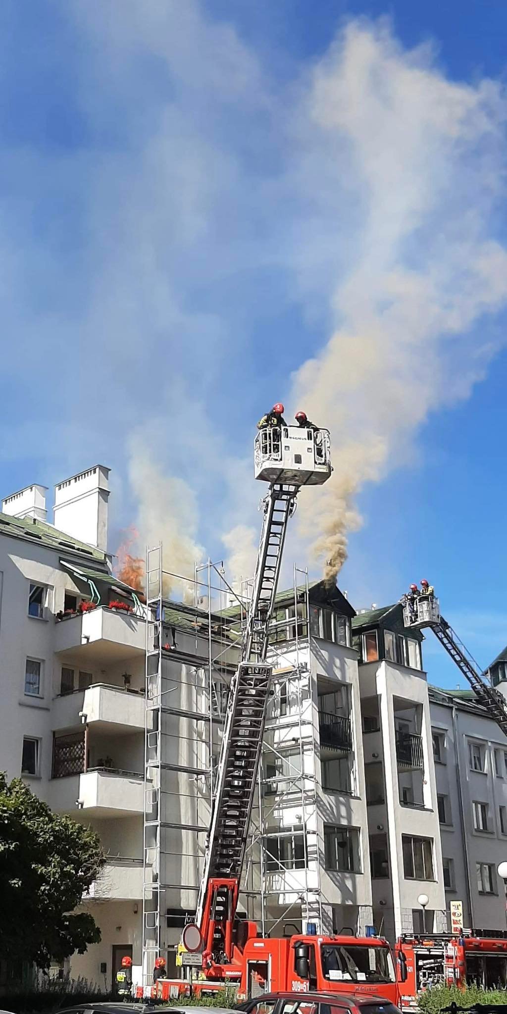 Duży pożar na Ursynowie! Płoną mieszkania i poddasze. Trwa akcja gaśnicza