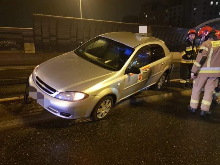Wczoraj wieczorem na moście Grota-Roweckiego na pasach lokalnych w kierunku Poznania dwa auta; Chevrolet i seat wjechały w barierki i zawisły na nich. Jedna osoba została ranna.