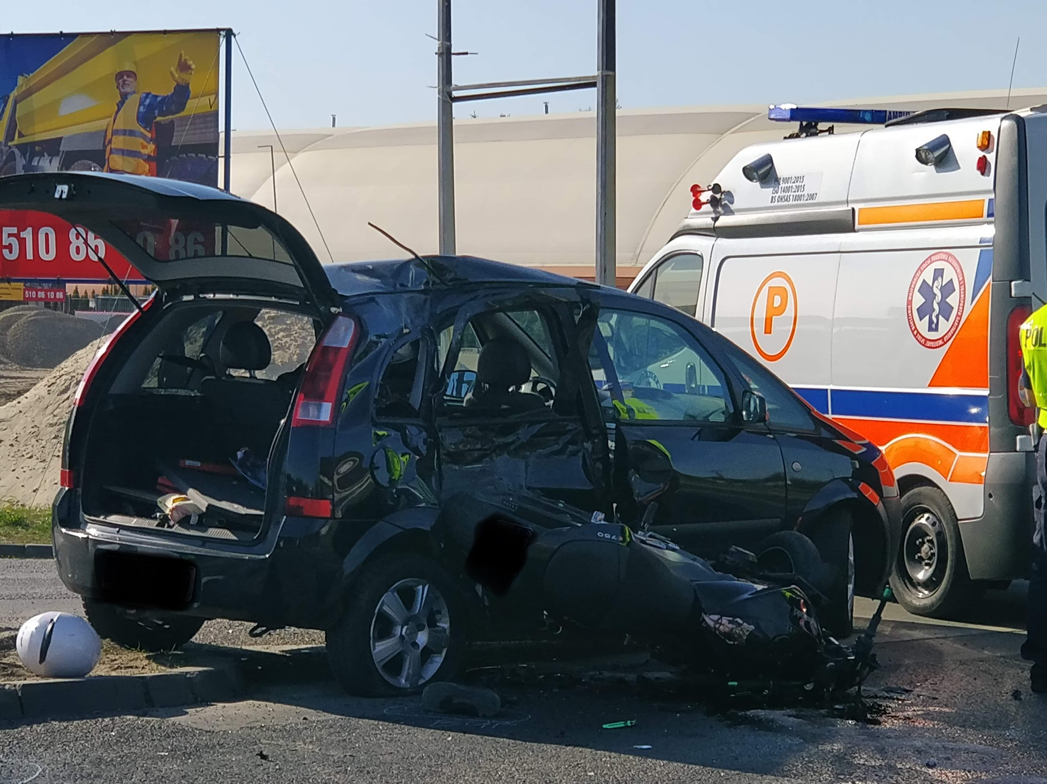 Na ulicy Płochocińskiej doszło do zderzenia opla z motocyklem kawasaki. Dwie osoby, które poruszały się motocyklem trafiły do szpitala.