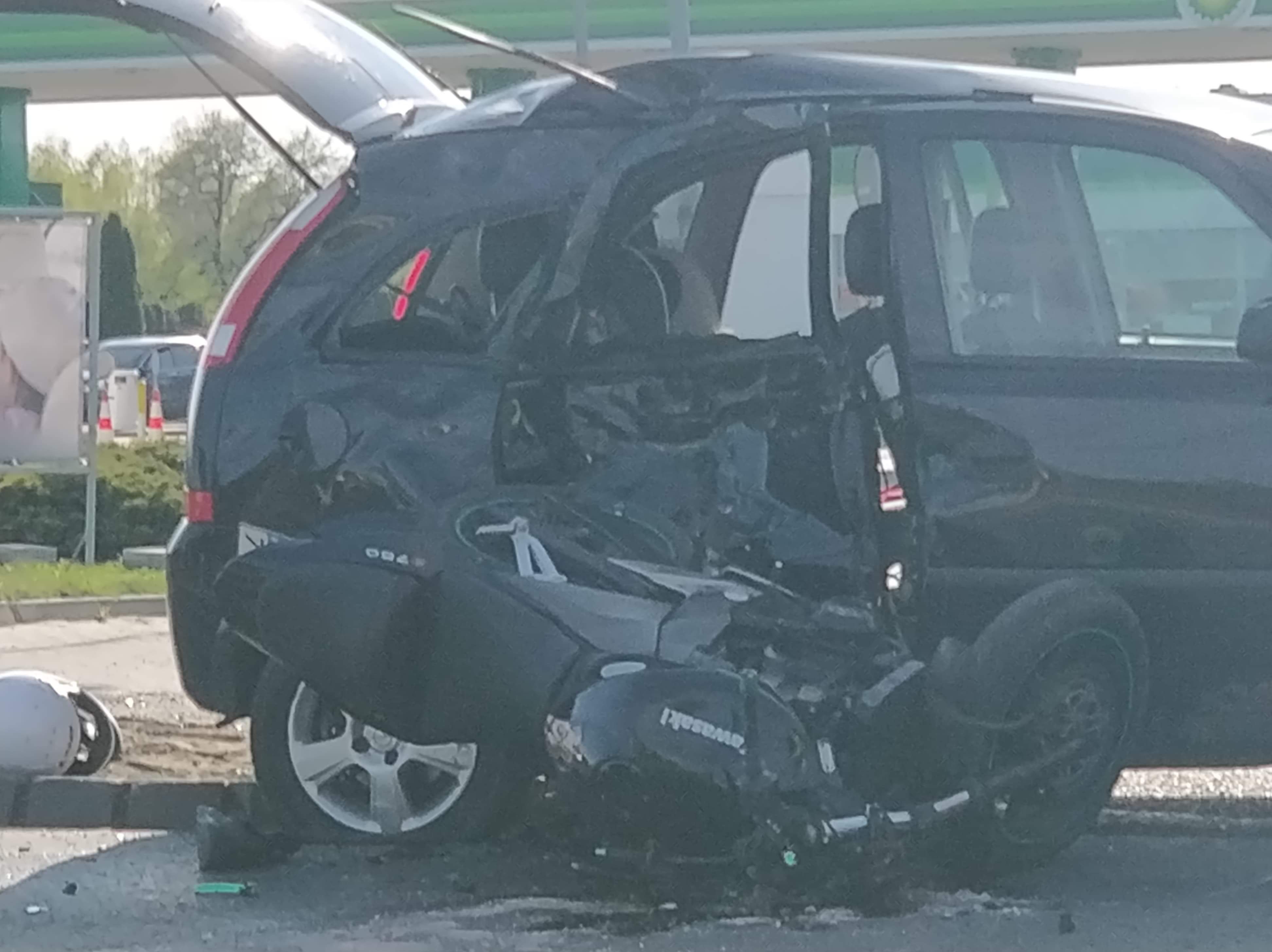 Samochód osobowy marki opel zderzył się z motocyklem kawasaki. Dwie osoby, które poruszały się motocyklem trafiły do szpitala.