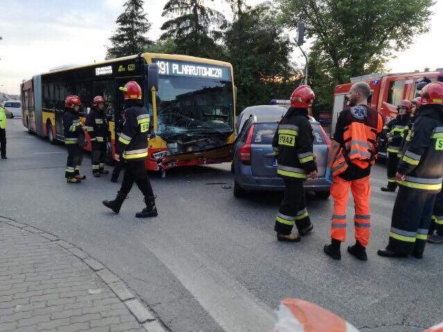 Na skrzyżowaniu ulic Spisaka i Kompanii AK „Kordian” doszło do zderzenia autobusu linii 191 z samochodem osobowym. Na miejscu jest policja, pogotowie i straż pożarna.