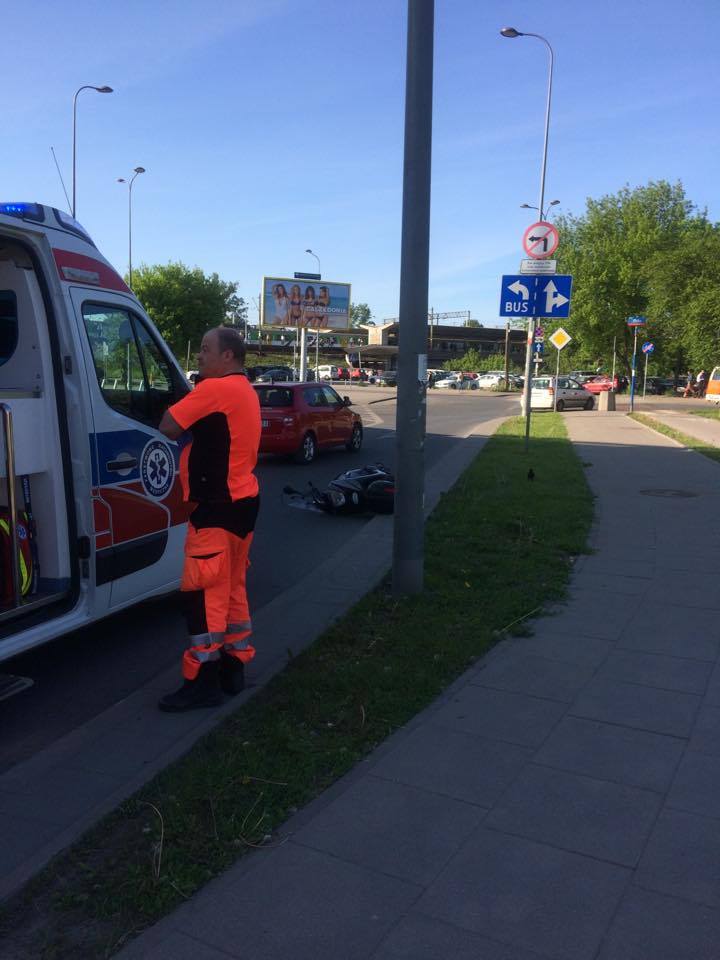 Dworzec Wschodni: motocyklista uderzył w krawężnik i skończył w szpitalu. Był nietrzeźwy